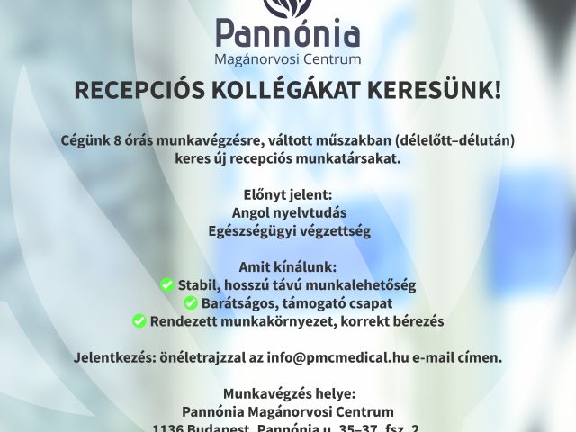 ✨ Recepciós kollégákat keresünk! ✨ A Pannónia Magánorvosi Rendelő csapatába keresünk új recepciós munkatársakat 8...